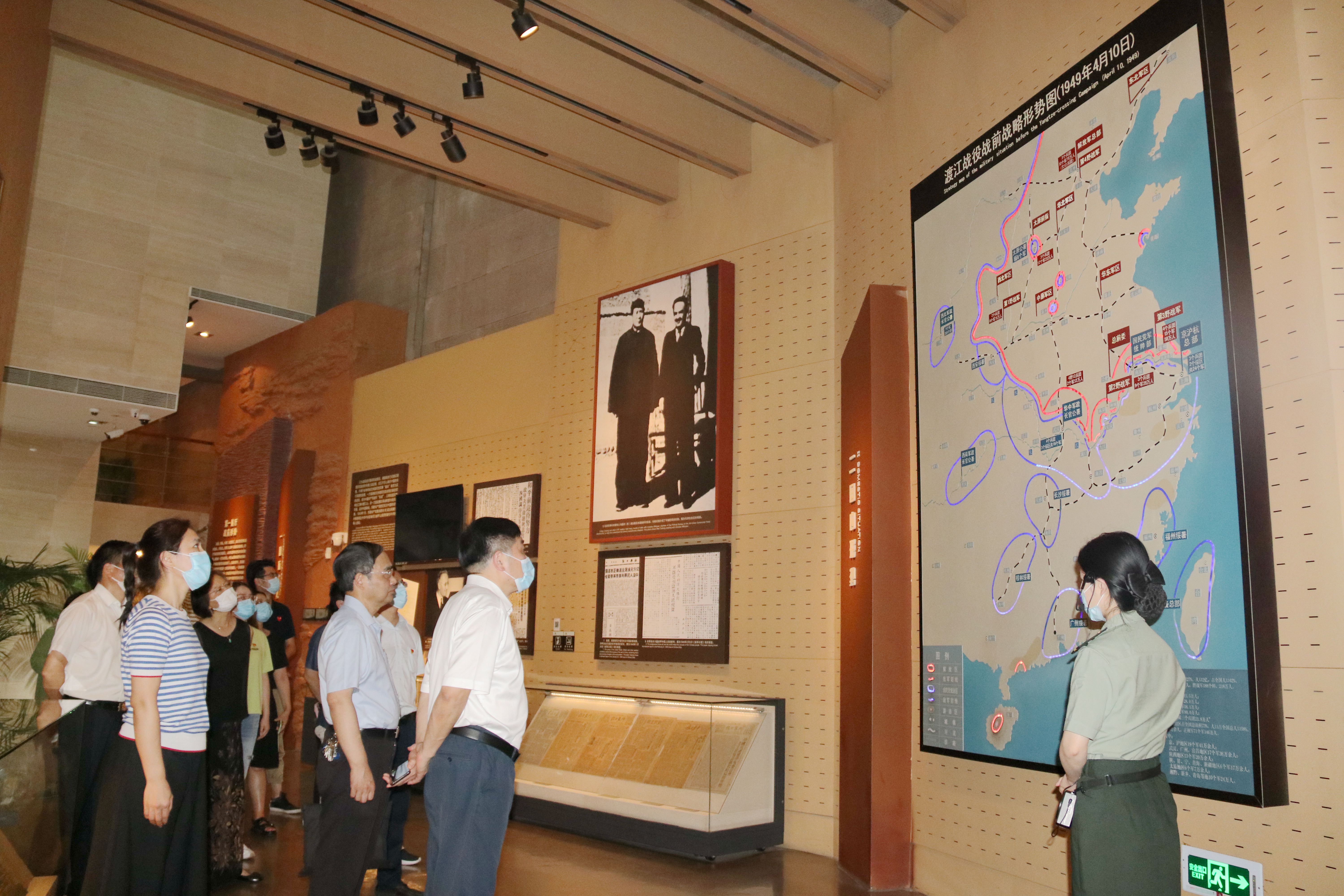 在渡江戰(zhàn)役紀(jì)念館,全體同志沿著習(xí)近平總書記考察路線,通過參觀實(shí)物、圖片以及聆聽解說,與歷史“對(duì)話”、與英雄“交流”,了解渡江戰(zhàn)役前的敵我態(tài)勢、戰(zhàn)役準(zhǔn)備、突破江防的過程,重溫72年前“鐘山風(fēng)雨起蒼黃,百萬雄師過大江”的激情歲月,感受人民解放軍英勇善戰(zhàn)、銳不可當(dāng)?shù)膹?qiáng)大氣勢,學(xué)習(xí)革命先烈不怕犧牲、前赴后繼的崇高精神。