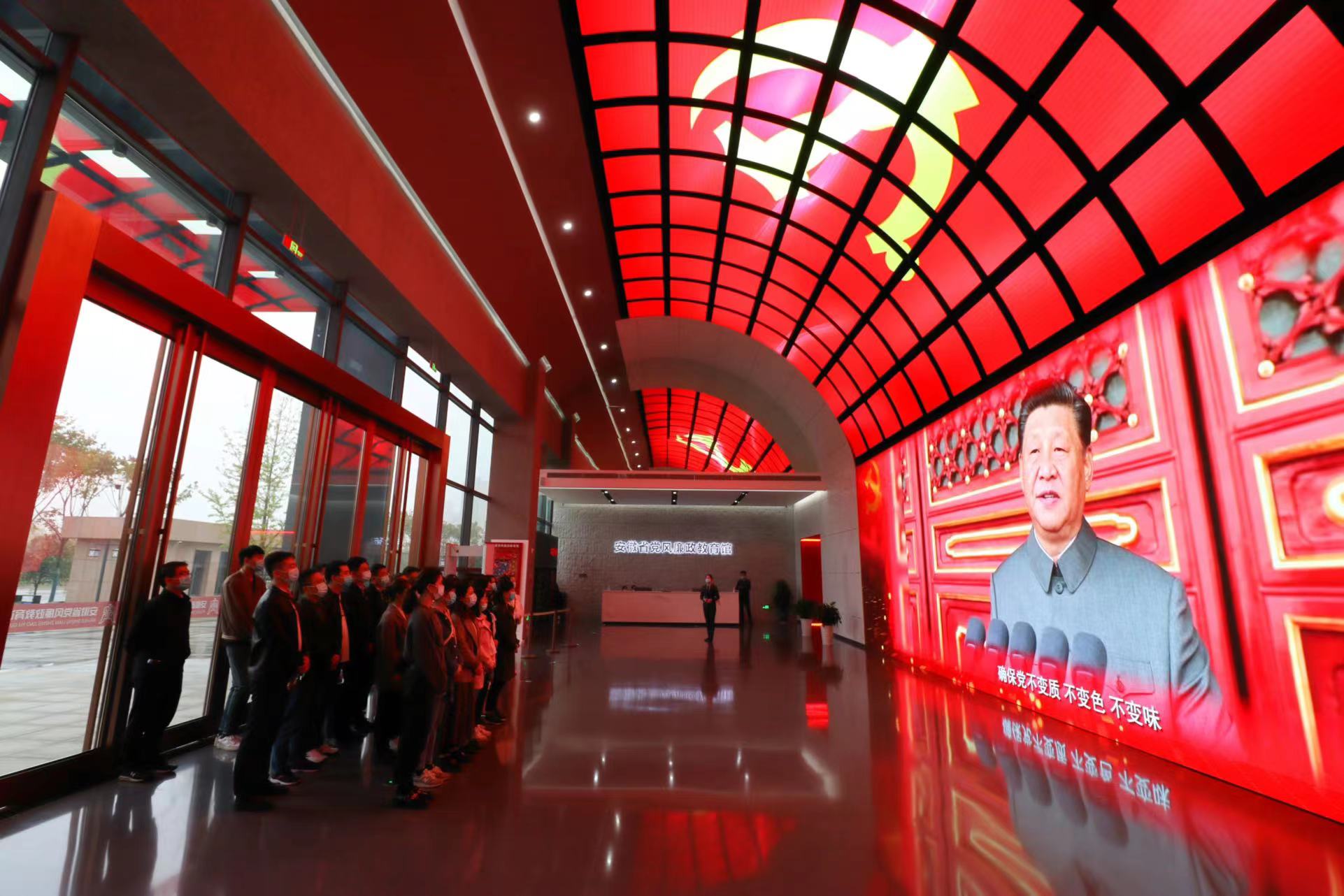 安徽省黨風(fēng)廉政教育館,采取序廳、主展廳和尾廳(宣誓廳)的主體結(jié)構(gòu),以“永遠(yuǎn)在路上”為主題,通過(guò)展板、圖片、視頻、雕塑、互動(dòng)查詢、場(chǎng)景還原、體驗(yàn)空間等形式,全方位回顧中國(guó)共產(chǎn)黨篳路藍(lán)縷的百年紀(jì)律建設(shè)史,展現(xiàn)安徽省尤其是十屆省委以來(lái)全面從嚴(yán)治黨、黨風(fēng)廉政建設(shè)和反腐敗斗爭(zhēng)成果。