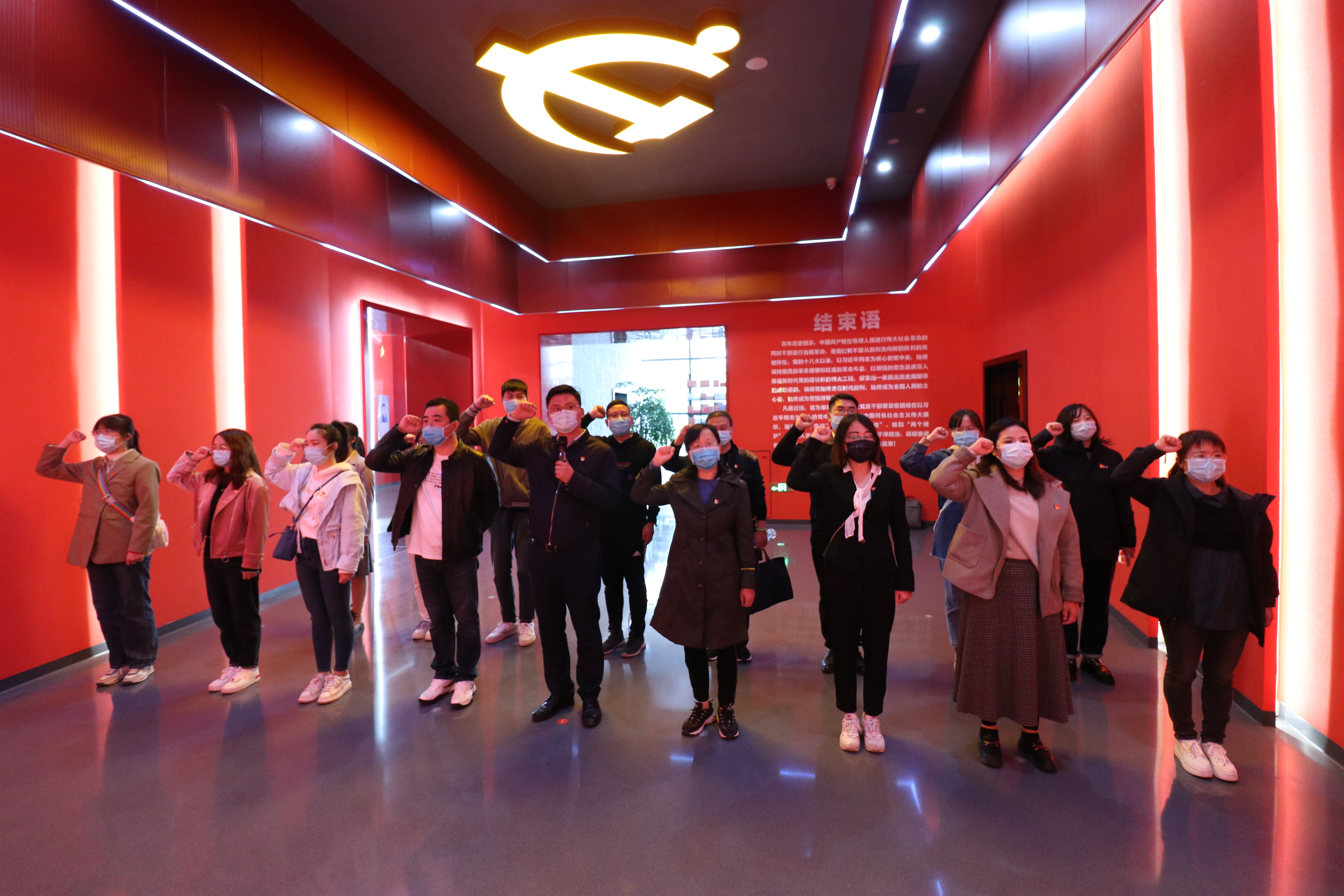 “我志愿加入中國(guó)共產(chǎn)黨,擁護(hù)黨的綱領(lǐng),遵守黨的章程……”,在宣誓廳,參加活動(dòng)的全體黨員整齊列隊(duì),面對(duì)鮮紅的黨旗,高舉右拳,宣讀入黨誓詞,牢記在黨旗下的錚錚誓言,再一次堅(jiān)定理想信念,激發(fā)不忘初心、繼續(xù)前進(jìn)的強(qiáng)大動(dòng)力。