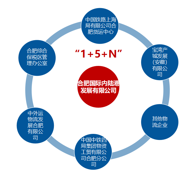 合肥陸港樞紐采取“政府引導(dǎo)、企業(yè)主導(dǎo)”模式,由合肥國際內(nèi)陸港發(fā)展有限公司作為建設(shè)運(yùn)營主體牽頭單位,組織建設(shè)公益性和平臺性項目,承擔(dān)運(yùn)營情況和監(jiān)測數(shù)據(jù)報送工作。合肥北站鐵路物流基地、寶灣國際物流中心、中鐵四局智慧物流園、中外運(yùn)合肥、合肥綜合保稅區(qū)重點(diǎn)參與樞紐物流設(shè)施建設(shè),與其他物流企業(yè)良好互動,形成“1+5+N”的合作建設(shè)模式。