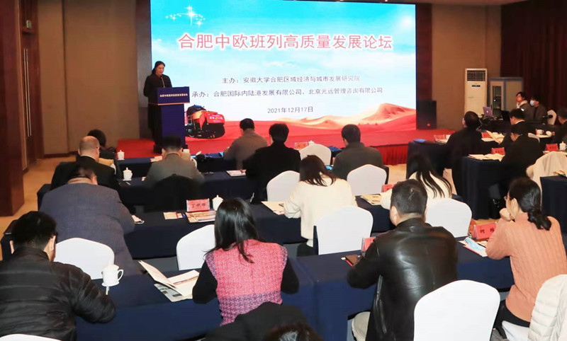 12月17日下午,由安徽大學(xué)合肥區(qū)域經(jīng)濟(jì)與城市發(fā)展研究院主辦,合肥國(guó)際內(nèi)陸港發(fā)展有限公司、北京元遠(yuǎn)管理咨詢有限公司共同承辦的合肥中歐班列高質(zhì)量發(fā)展論壇在合肥舉行。本次論壇的主題為“融入構(gòu)建新發(fā)展格局、擴(kuò)大全方位對(duì)外開(kāi)放”,旨在探討中歐班列發(fā)展形勢(shì),為合肥中歐班列可持續(xù)發(fā)展理清思路,推動(dòng)合肥中歐班列集結(jié)中心建設(shè)。