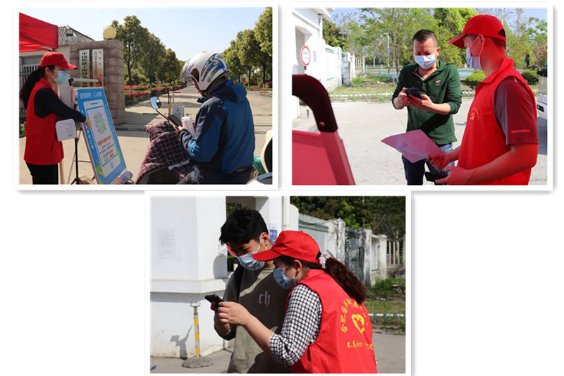 在值班值守點,志愿者認真查驗進站人員和車輛駕駛員健康碼、行程碼,做好行程登記工作。