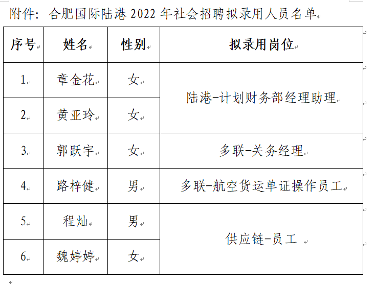 附件:合肥國(guó)際陸港2022年社會(huì)招聘擬錄用人員名單