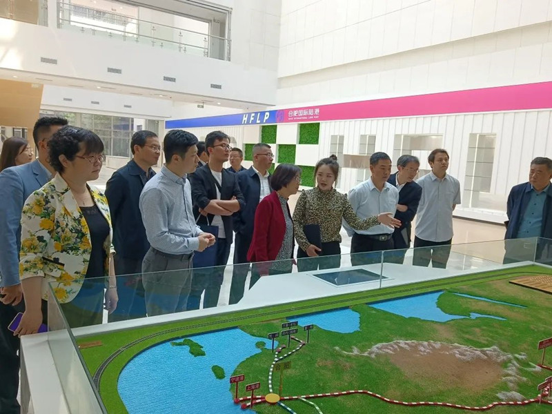 程秋月一行實地考察了合肥北站物流基地中歐班列運營現(xiàn)場,詳細(xì)聽取中歐班列發(fā)運、物流樞紐基礎(chǔ)設(shè)施建設(shè)等情況介紹。在合肥國際陸港一期項目建設(shè)現(xiàn)場,通過展廳講解和座談交流,深入了解“合肥中歐班列+”、市場拓展、多式聯(lián)運等工作開展情況。