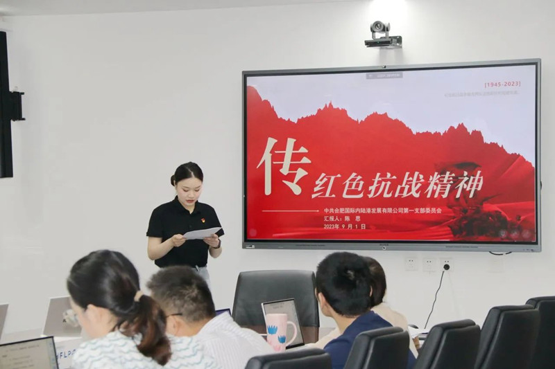 9月3日是中國(guó)人民抗日戰(zhàn)爭(zhēng)勝利紀(jì)念日,也是世界反法西斯戰(zhàn)爭(zhēng)勝利紀(jì)念日。值此中國(guó)人民抗日戰(zhàn)爭(zhēng)暨世界反法西斯戰(zhàn)爭(zhēng)勝利78周年之際,來(lái)自合肥國(guó)際陸港第一黨支部的黨員陳思同志,結(jié)合抗戰(zhàn)歷史,以《憶崢嶸歲月 傳紅色抗戰(zhàn)精神》為主題為與會(huì)人員講授一堂微黨課。