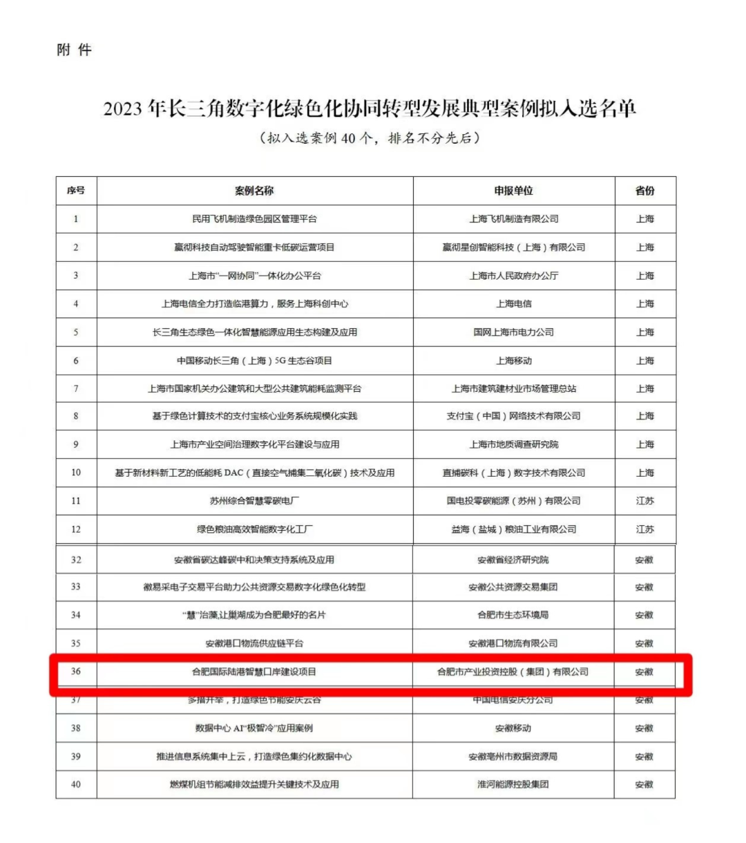 正在公示!“合肥國際陸港智慧口岸建設項目”進入2023年長三角數(shù)字化綠色化協(xié)同轉型發(fā)展典型案例擬入選名單