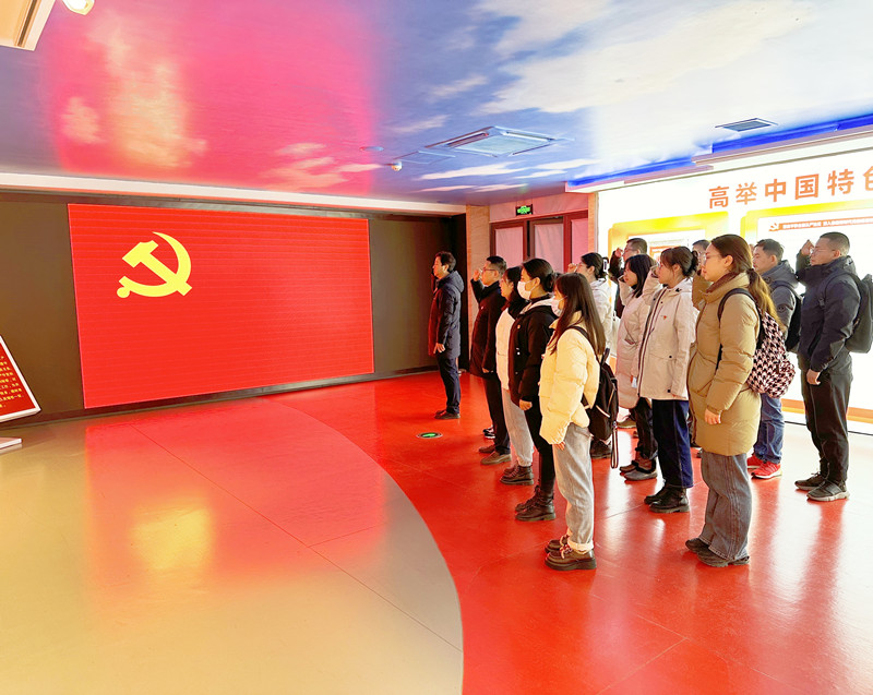 參觀結(jié)束后,全體黨員面對黨旗重溫了入黨誓詞。