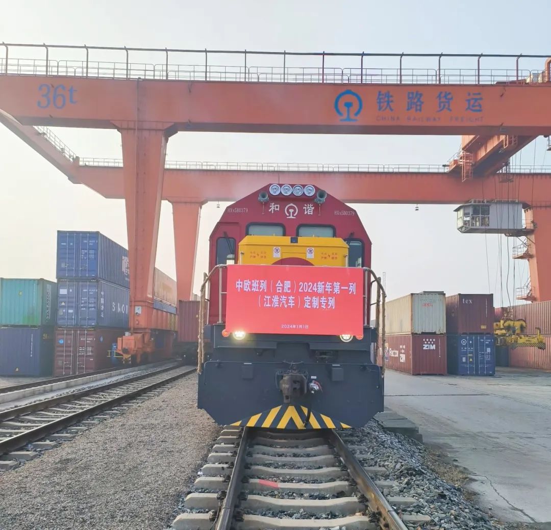 2024年1月1日,在喜慶祥和的節(jié)日氛圍中,新年首列中歐班列(合肥)從合肥北站物流基地啟程出發(fā),開啟了2024年的新征程。這趟班列是江淮專列,滿載110TEU駕駛員座椅,儀表板總成等安徽本土貨物,將經(jīng)阿拉山口口岸發(fā)運(yùn)至俄羅斯吉洪諾沃。