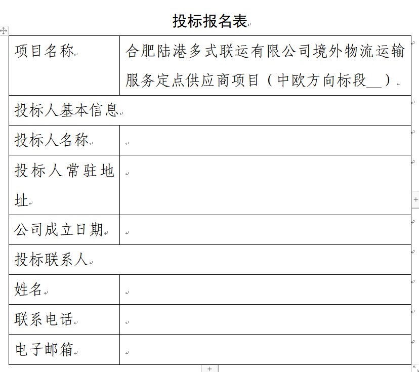 (一)項(xiàng)目名稱:合肥陸港多式聯(lián)運(yùn)有限公司境外物流運(yùn)輸服務(wù)定點(diǎn)供應(yīng)商(中歐方向)項(xiàng)目