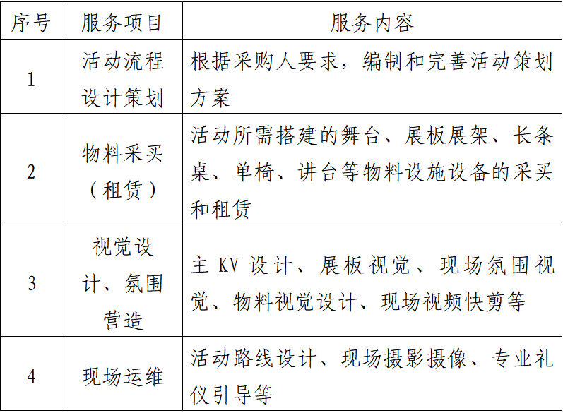 4.項目內(nèi)容:包括但不限于活動策劃、展示設(shè)計、物料采買(租賃)、氛圍營造、舞臺設(shè)計搭建、現(xiàn)場運(yùn)維等服務(wù)。