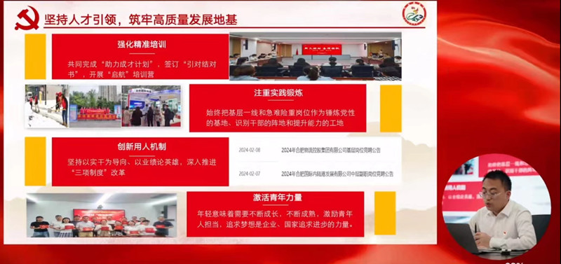新時(shí)代,要堅(jiān)持黨建引領(lǐng),對(duì)照落實(shí)習(xí)近平總書記關(guān)于國(guó)有企業(yè)改革發(fā)展和黨的建設(shè)的系列重要論述精神,一是成就一支集業(yè)務(wù)拓展、班列操作、財(cái)務(wù)、風(fēng)控合規(guī)等各功能崗位為一體的骨干隊(duì)伍,持續(xù)涵養(yǎng)干事創(chuàng)業(yè)、風(fēng)清氣正的良好政治生態(tài)。二是積極推進(jìn)“絲路海運(yùn)”港航貿(mào)一體化發(fā)展,加快陸海新通道、空中絲綢之路建設(shè)。以“立足合肥、服務(wù)安徽、輻射長(zhǎng)三角”的總體定位,繼續(xù)擴(kuò)大“合肥中歐班列+城市”模式,利用合肥集結(jié)優(yōu)勢(shì),服務(wù)于安徽乃至長(zhǎng)三角企業(yè)客戶。三是抓住數(shù)字經(jīng)濟(jì)大趨勢(shì),探索智能化發(fā)展,實(shí)現(xiàn)對(duì)班列真正的“全過程管理”,助力多式聯(lián)運(yùn)信息化發(fā)展。四是強(qiáng)化基礎(chǔ)設(shè)施建設(shè),助力班列提速升級(jí)。五是堅(jiān)持黨管干部、黨管人才和發(fā)揮市場(chǎng)機(jī)制作用相結(jié)合,著力培養(yǎng)講政治、懂經(jīng)營(yíng)、會(huì)管理的新型干部人才隊(duì)伍,走出一條加強(qiáng)黨員隊(duì)伍建設(shè)與培養(yǎng)高素質(zhì)人才隊(duì)伍雙贏的新路子。