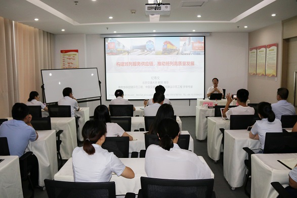 下午的培訓(xùn)活動分為兩項。首先紀(jì)壽文教授進(jìn)行了題為:《構(gòu)建班列服務(wù)供應(yīng)鏈,推動班列高質(zhì)量發(fā)展》的課程培訓(xùn),從班列服務(wù)供應(yīng)鏈和中歐班列運(yùn)作戰(zhàn)略兩方面進(jìn)行了培訓(xùn),列舉分析了中歐班列轉(zhuǎn)變發(fā)展方式,實(shí)現(xiàn)高質(zhì)量發(fā)展的典型案例。