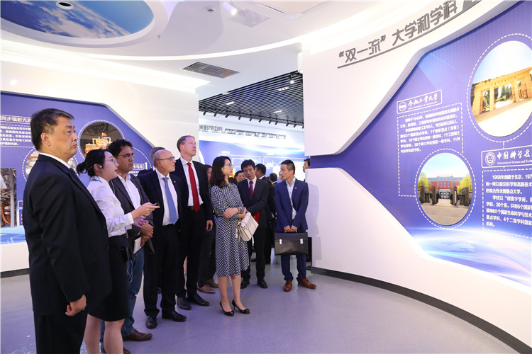 成立儀式后,聯(lián)誼會(huì)來到了合肥高新區(qū)創(chuàng)新產(chǎn)業(yè)園參觀了國(guó)際人才城展廳,合肥國(guó)際陸港相關(guān)業(yè)務(wù)人員在合肥之友2019年促進(jìn)中德合作對(duì)接會(huì)上進(jìn)行了PPT介紹。