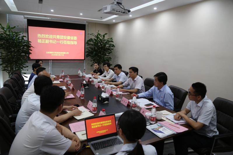 5月27日,團(tuán)省委黨組成員、副書記、省青聯(lián)主席楊正一行調(diào)研合肥國際陸港。團(tuán)市委書記童友好,團(tuán)省委組織部副部長王磊,團(tuán)市委副書記戴軍陪同調(diào)研。產(chǎn)投集團(tuán)黨委書記、董事長雍鳳山,產(chǎn)投集團(tuán)黨委委員、董事、副總經(jīng)理,合肥國際陸港董事長沈校根,合肥國際陸港總經(jīng)理劉軍、副總經(jīng)理翟詠梅參加調(diào)研座談。
