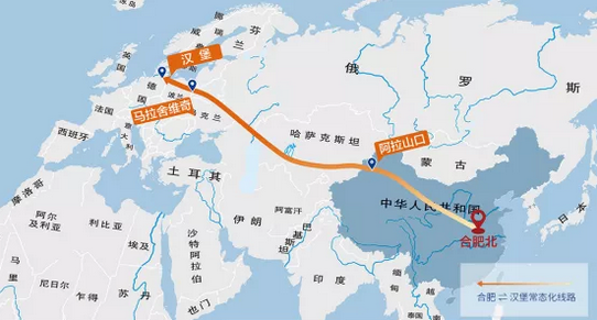 2014年6月26日,安徽首個(gè)國(guó)際鐵路貨運(yùn)專列——“合新歐”中亞班列從合肥北站出發(fā),駛向哈薩克斯坦的阿拉木圖,安徽有了通往中亞和歐洲的鐵路貨運(yùn)直通車,直接融入絲綢之路經(jīng)濟(jì)帶。