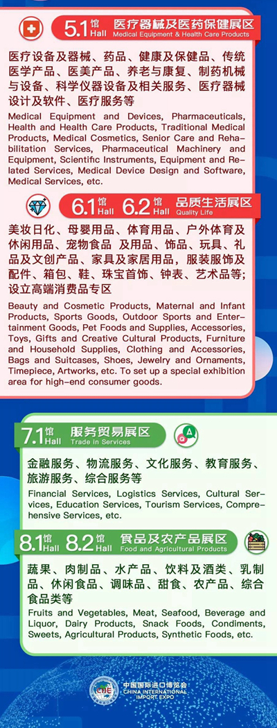 以下為第二屆進(jìn)博會(huì)5個(gè)板塊7個(gè)展區(qū)的詳細(xì)情況: