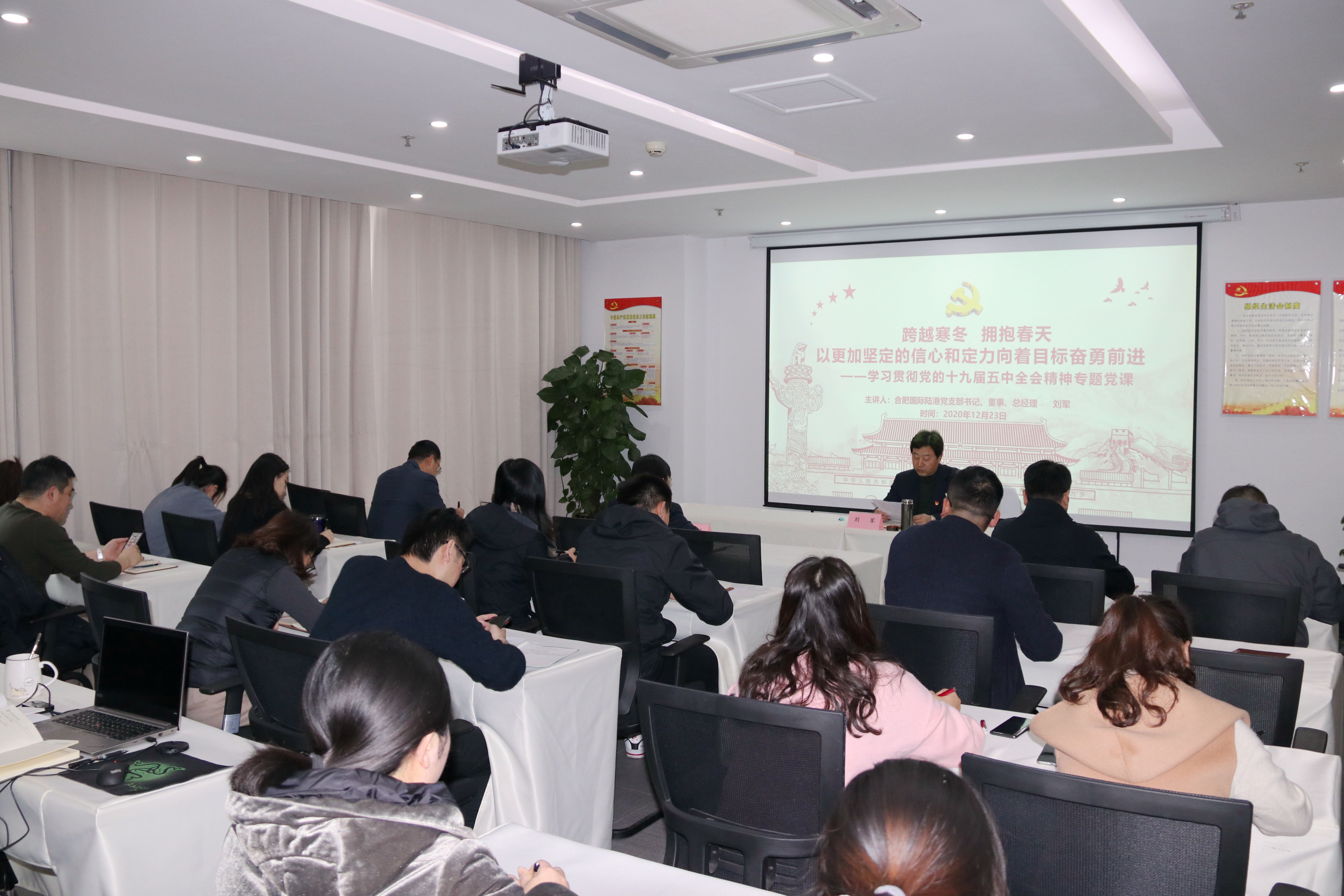為深入貫徹落實(shí)黨的十九屆五中全會(huì)精神、12月16日至18日召開(kāi)的中央經(jīng)濟(jì)工作會(huì)議精神,對(duì)公司經(jīng)營(yíng)目標(biāo)落實(shí)情況再總結(jié)、再分析、再部署,12月23日下午,合肥國(guó)際陸港黨支部書(shū)記、董事、總經(jīng)理劉軍以“跨越寒冬 擁抱春天——以更加堅(jiān)定的信心和定力向著目標(biāo)奮勇前進(jìn)”為主題,圍繞如何認(rèn)清形勢(shì)、搶抓機(jī)遇、克服困難,為全體黨員、入黨積極分子上黨課。