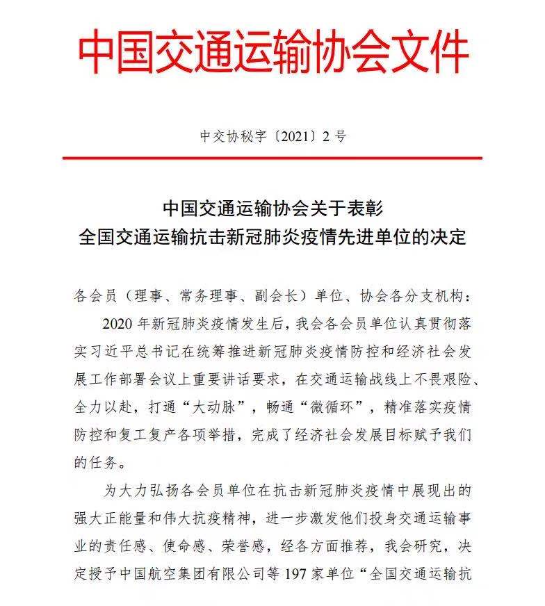 合肥國(guó)際陸港獲批“全國(guó)交通運(yùn)輸 抗擊新冠肺炎疫情先進(jìn)單位”榮譽(yù)稱號(hào)