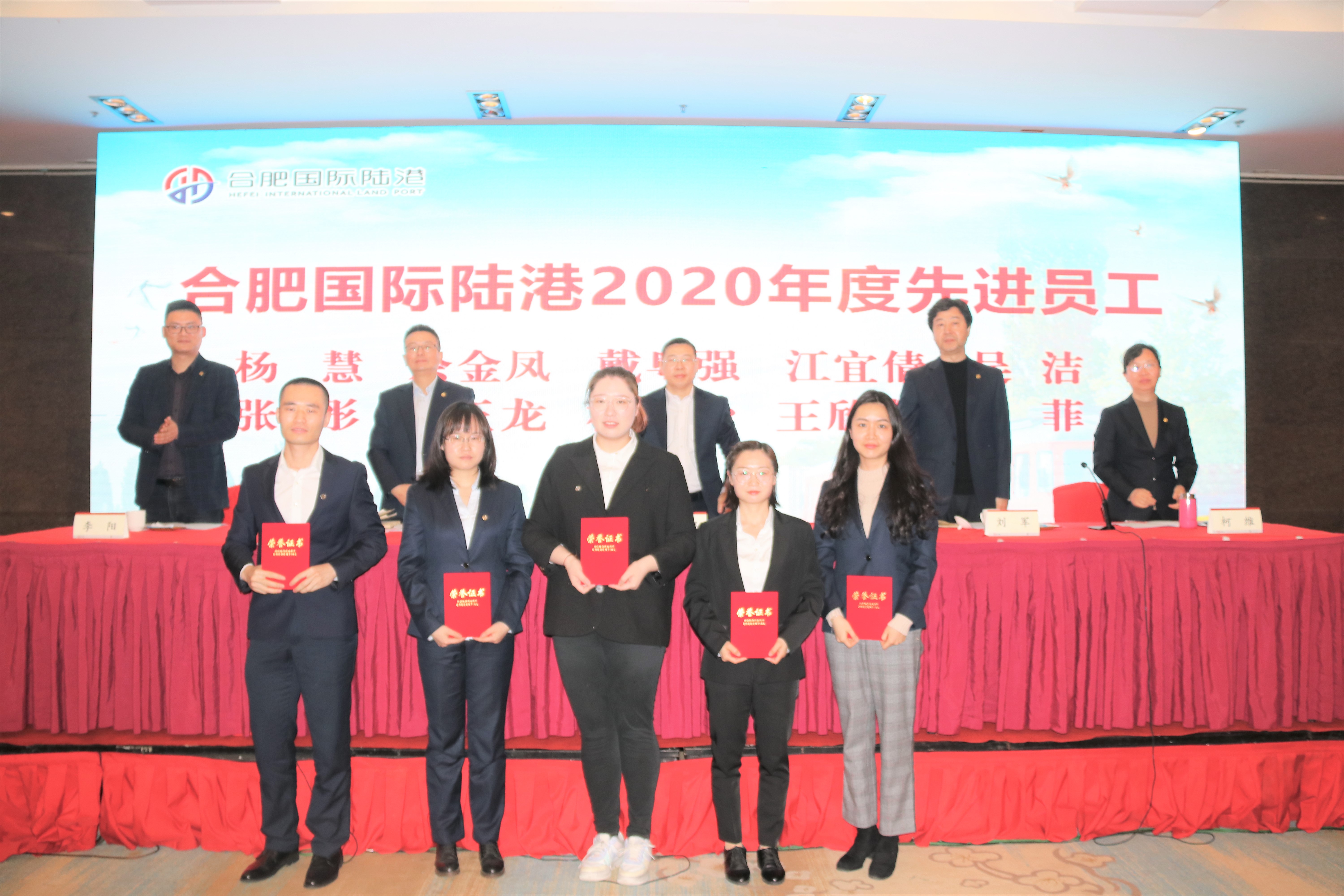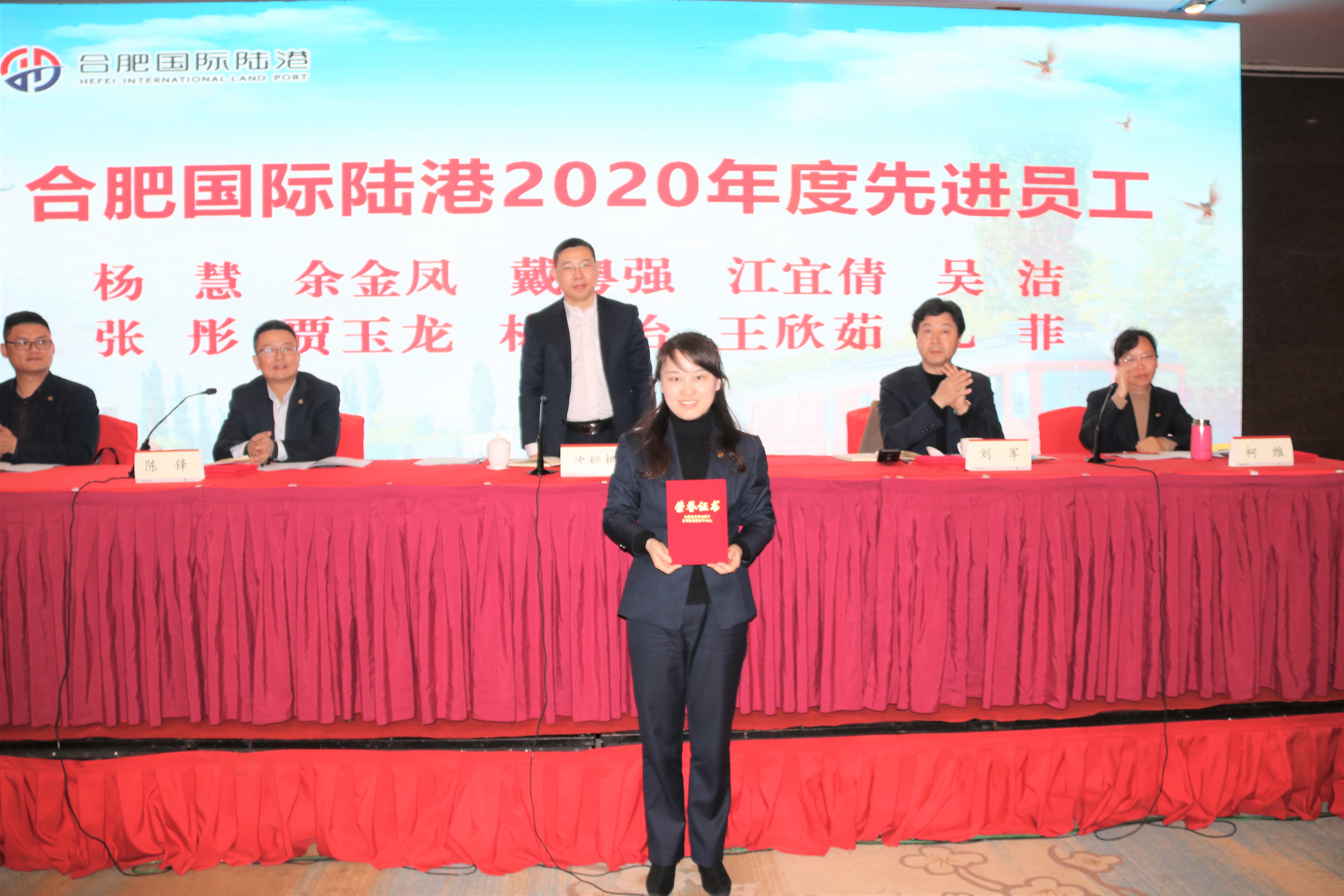 合肥國(guó)際陸港支委委員、董事、總會(huì)計(jì)師柯維宣讀表彰決定。沈校根和公司領(lǐng)導(dǎo)班子成員對(duì)2020年度先進(jìn)集體、先進(jìn)員工進(jìn)行表彰頒獎(jiǎng)。楊慧、賈玉龍、王欣茹作為先進(jìn)代表分別作出精彩發(fā)言。