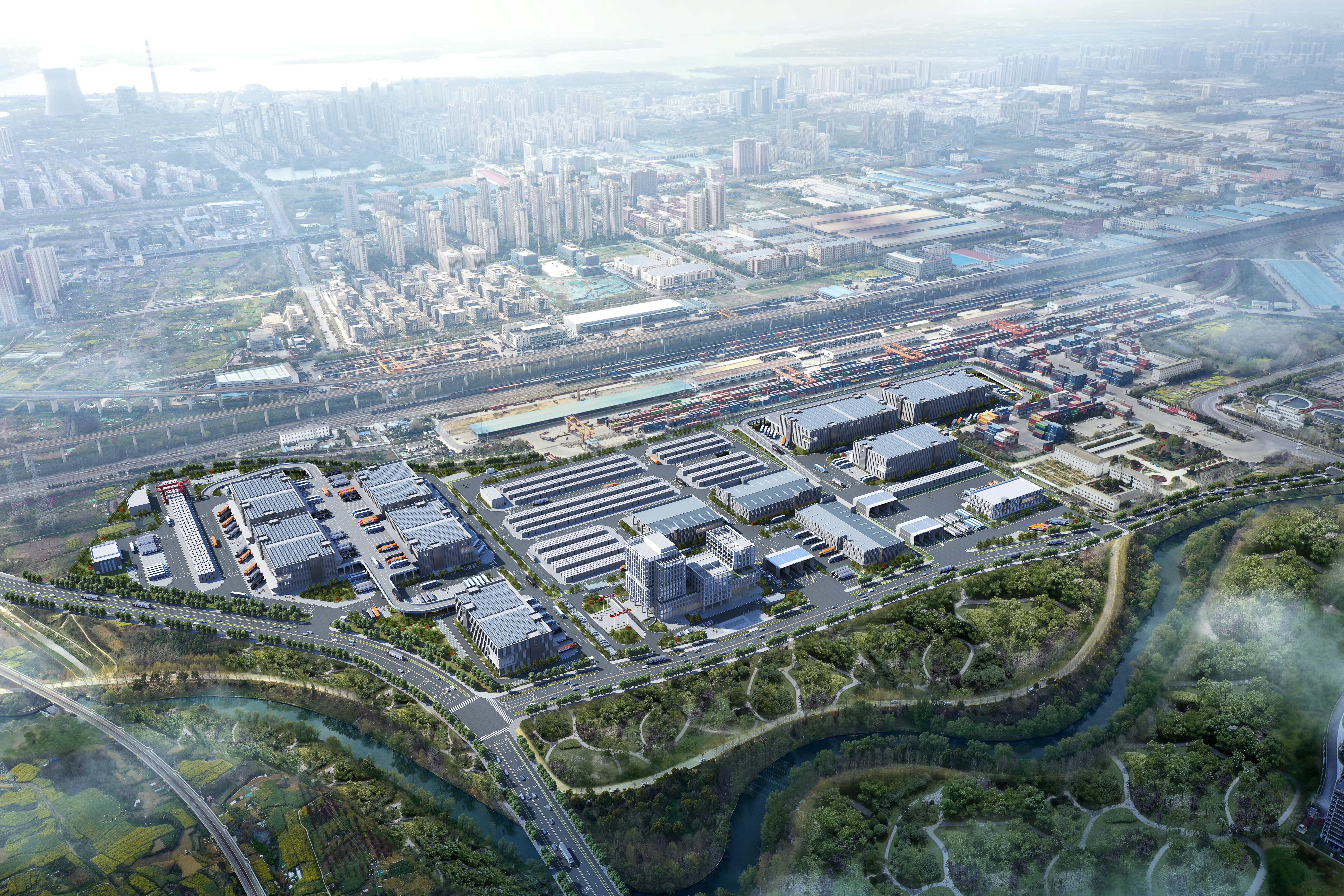 項(xiàng)目建成后,將涵蓋多式聯(lián)運(yùn)區(qū)、倉(cāng)儲(chǔ)物流區(qū)、海關(guān)監(jiān)管區(qū)、倉(cāng)儲(chǔ)配送區(qū)、商貿(mào)展示區(qū)、綜合服務(wù)區(qū)等板塊。