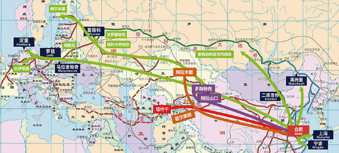 2018年1月6日17:08分,一列滿載50個40英尺集裝箱貨物的中歐班列從合肥北鐵路口岸出發(fā),奔向萬里之遙的德國漢堡。這是合肥國際陸港自2017年11月成立以來發(fā)出的第一趟班列。自此,一趟趟班列從合肥發(fā)出,滾滾車輪行使在亞歐大陸縱橫交錯的鐵軌上,奔騰不息的駛向“新絲綢之路”,構(gòu)建了一條聯(lián)結(jié)歐亞大陸的新通道,合肥也已成為我國內(nèi)陸地區(qū)溝通全國、聯(lián)通世界的重要“絲路”之窗。
