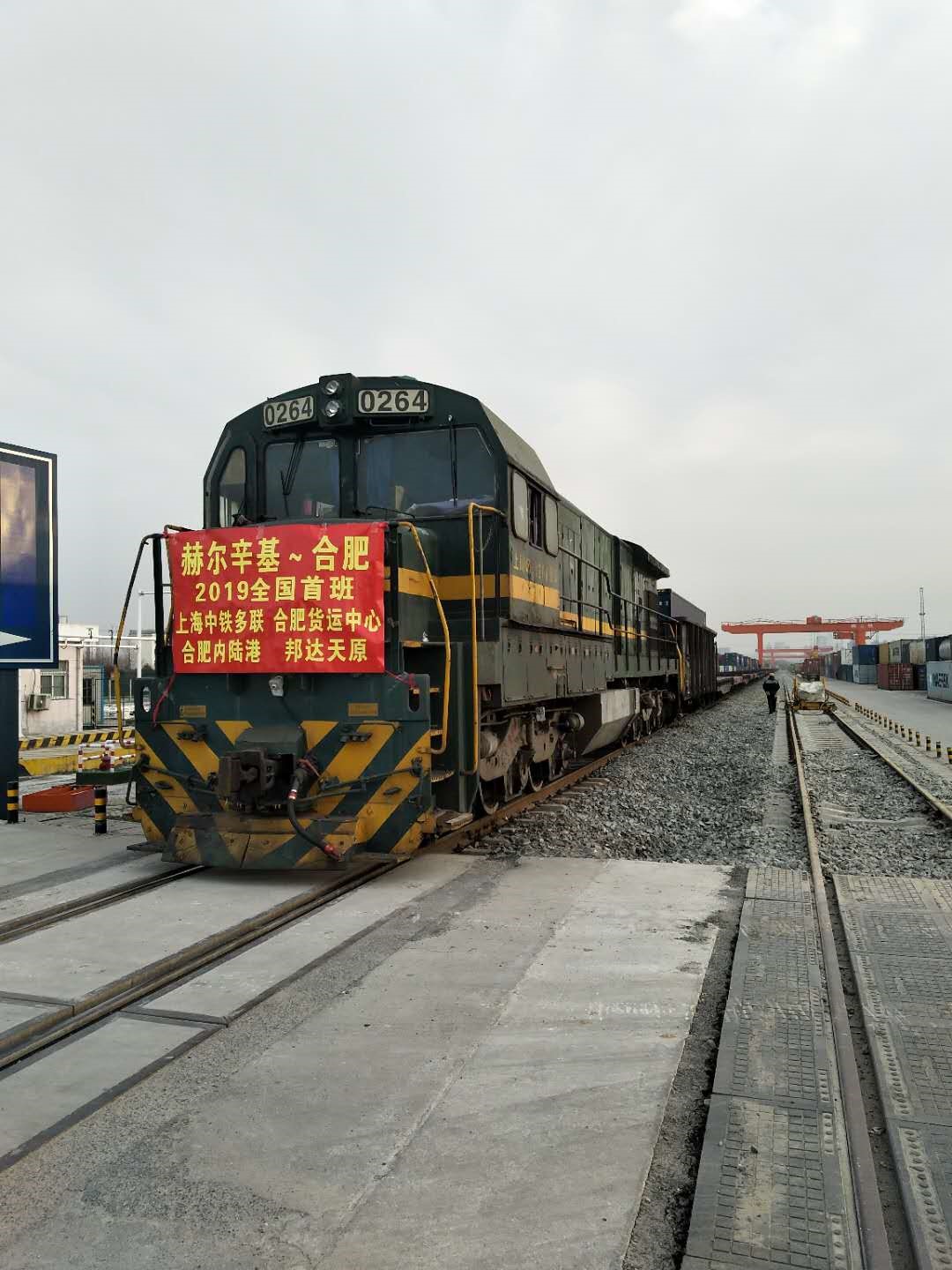 1月8日凌晨2時,一列滿載銅板紙、工業(yè)用運輸帶鉸鏈、工業(yè)用運輸帶配件、工業(yè)用機油濾網、液壓起重裝置等貨物的芬蘭(赫爾辛基)至合肥中歐班列順利抵達合肥北站,帶來了北歐的高品質產品,送來了北歐人民提前的新春祝福。這是2019年合肥國際內陸港發(fā)展有限公司(以下簡稱合肥國際陸港)組織運營、第一趟抵達合肥的中歐回程班列,也是全國首趟從芬蘭赫爾辛基始發(fā)的中歐回程班列。